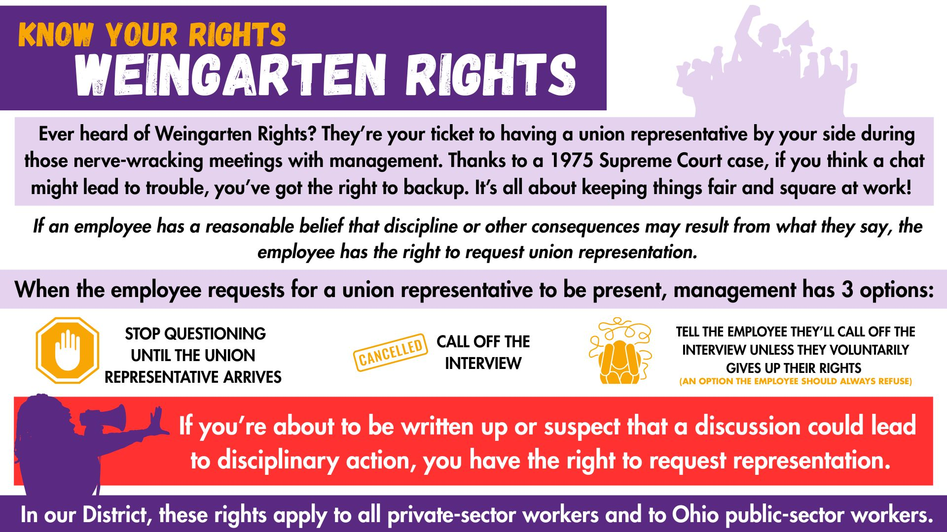You always have a right to union representation if you’re being disciplined. Learn about your Weingarten Rights!